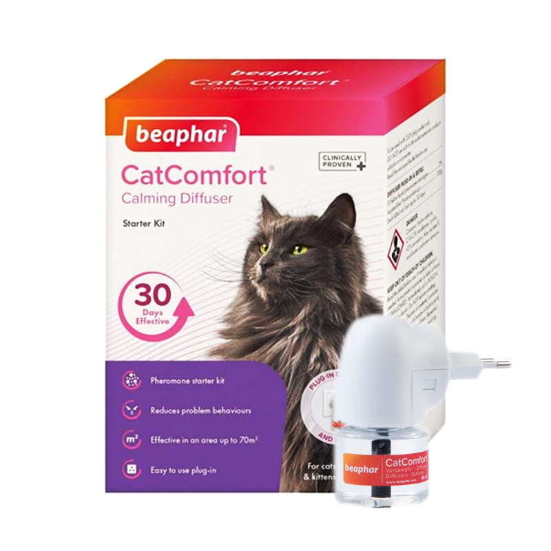 Beaphar CatComfort utiliza feromonas reconocidas por su gato y clínicamente probadas para promover su tranquilidad y ayudar a prevenir comportamientos no deseados. Ideal para viajar o usar durante las visitas al veterinario.