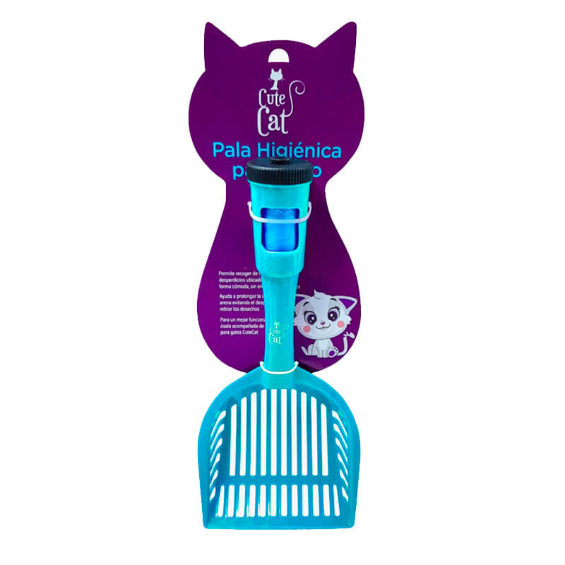 Pala sanitaria de divertidos colores que contiene bolsas para el rápido recojo de residuos en la bandeja sanitaria.