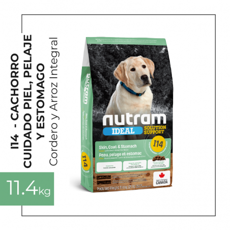 El alimento para perros I14 Nutram Ideal Solution Support® para piel, pelaje y estómago es una receta holística, multibeneficiosa y rica en nutrientes que mejora el bienestar de su mascota de adentro hacia afuera. Nuestro enfoque holístico comienza con la digestión a través de una combinación especial de proteínas saludables fáciles de digerir, como el cordero real, que combinado con calabaza, una gran fuente de fibra, promueve el ambiente óptimo para los estómagos sensibles.