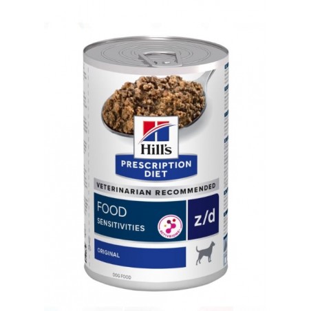 Hill’s Prescription Diet z/d Canine Sensibilidad Alimentaria es un alimento húmedo veterinario clínicamente probado, formulado para reducir los signos cutáneos y digestivos asociados a las alergias e intolerancias alimentarias en perros adultos.