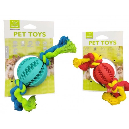 Pelota de goma para masticar con dispensador de alimentos y snacks de 7.5 centímetros de diámetro con soga de alta duración para perros medianos y grandes