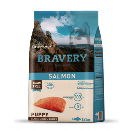 BRAVERY CACHORRO PARA RAZAS MEDIANAS Y GRANDES DE SALMÓN GRAIN FREE HIPOALERGÉNICO