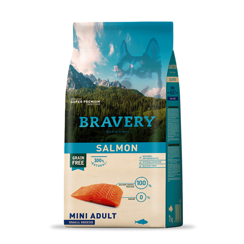 BRAVERY ADULTO PARA MINI Y RAZAS PEQUEÑAS DE SALMÓN GRAIN FREE HIPOALERGÉNICO