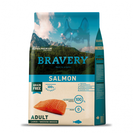 BRAVERY ADULTO PARA RAZAS MEDIANAS Y GRANDES DE SALMÓN GRAIN FREE HIPOALERGÉNICO