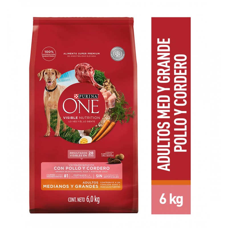 Una taza de 200 ml contiene aproximadamente 90g de PURINA ONE Adultos Medianos y Grandes Pollo y Cordero. El cambio de la alimentación de tu perro debe ser gradual en un periodo de 7 hasta 10 días. Sustituye pequeñas cantidades de alimento cada vez hasta que tu perro consuma únicamente PURINA ONE Adultos Medianos y Grandes Pollo y Cordero. Las cantidades diarias recomendadas deberán ser ajustadas a las condiciones ambientales, al nivel de actividad del perro y a su condición física.