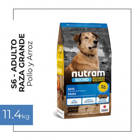 Nutram S6, es una receta pensada para darle a tu mascota un conjunto de beneficios nutricionales que le permitan llevar una vida saludable. Contiene proteína animal como primer ingrediente que proporciona los aminoacidos esenciales para su organismo, la combinación de aceite de salmón y linaza contribuye a una piel sana y un pelaje brillante además, la calabaza y el jengibre proveen fibra que facilita el tránsito de los alimentos a través del sistema digestivo. Tienes a todos los ingredientes de la receta actuando para darle a tu mascota los mayores beneficios de cada uno más las ventajas de su combinación.
