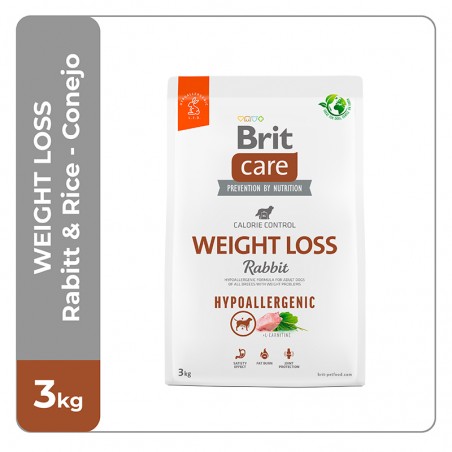 Brit Care Weight Loss está adecuadamente balanceado y es altamente digestible. Alimento Super Premium formulado con los requerimientos especiales de los perros con sobrepeso. Altos contenidos de carne de conejo y bajos niveles de grasa generan una buena condición del músculo y reducen la grasa corporal.